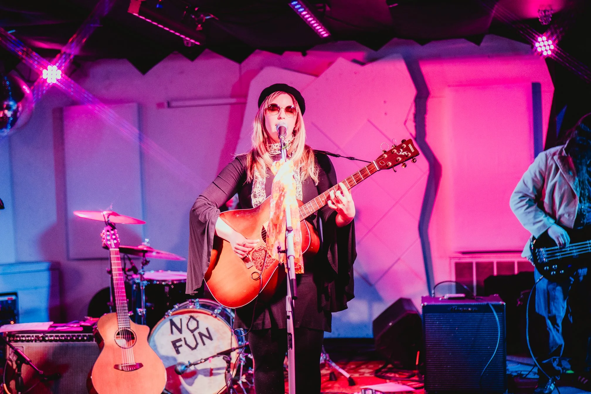 Sabrina Trueheart was back at No Fun this time with her full band, Crimson Retro, along with a dreamy lineup of artists presented by Byrdhouse Records. The Greetings got the night going followed by the melancholic vibes of Catmospheric whose harp made the room turn quiet instantly. Next up, Billy and the Great Western Postal Service got everyone dancing before Sabrina and Crimson Retro took the stage. Their psychedelic, vintage vibes filled the space and rounded out a night of music that felt like an ethereal journey through space and time.