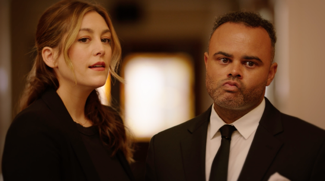 The sound design and score here does the heavy lifting. There’s a high-pitched, consistent hum with somber piano laid over the top. Just beyond that, there’s an argument. It’s too muffled to make out the words but it’s clear tensions are running high.