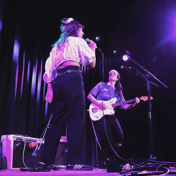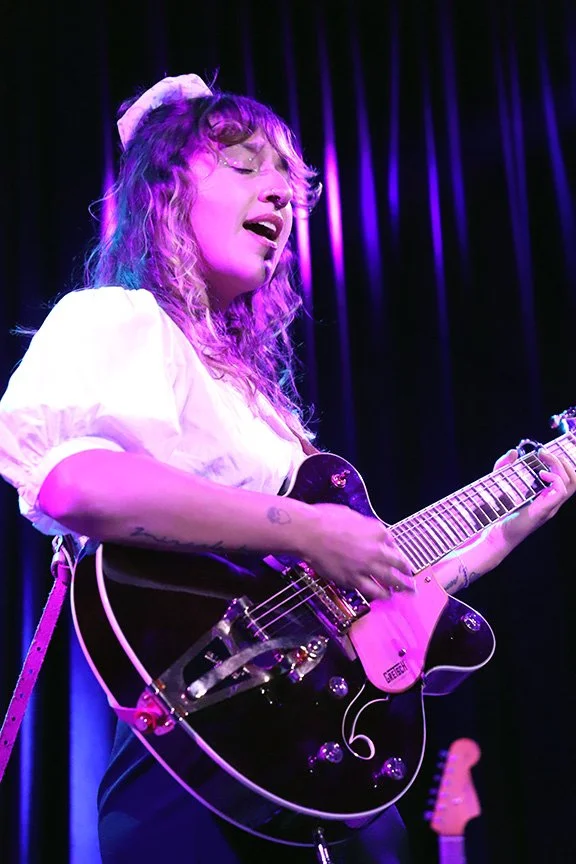 After a few other spellbinding renditions featuring Al, her guitar, and hues of purple and blue mood lighting, she brought Aubrey back to the stage. Just as the two were about to reach for their guitars, Al told the audience she needed to pull Aubrey aside for a quick convo that she said was actually wildly necessary. While they both ran off stage, dialogue started back up among the bodies in the room. But just before the conversations could grow louder, Al and Aubrey briskly walked across the stage once more. They went right into more tunes, leaving us in suspense over what their secret meeting was all about.