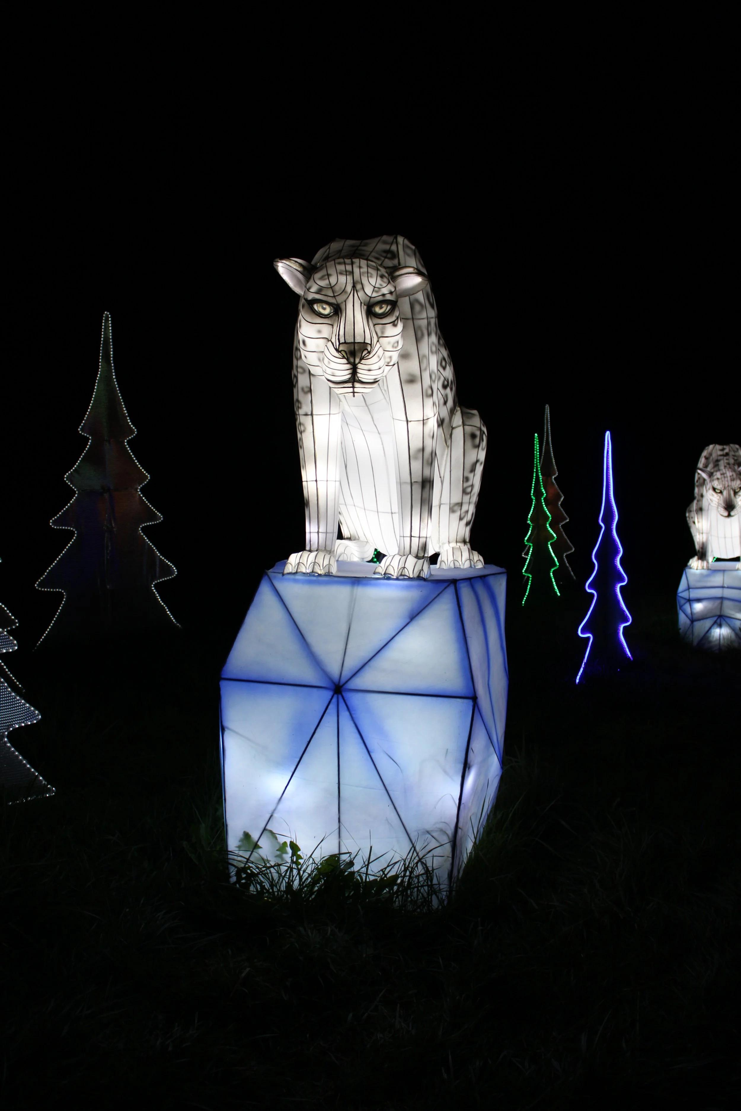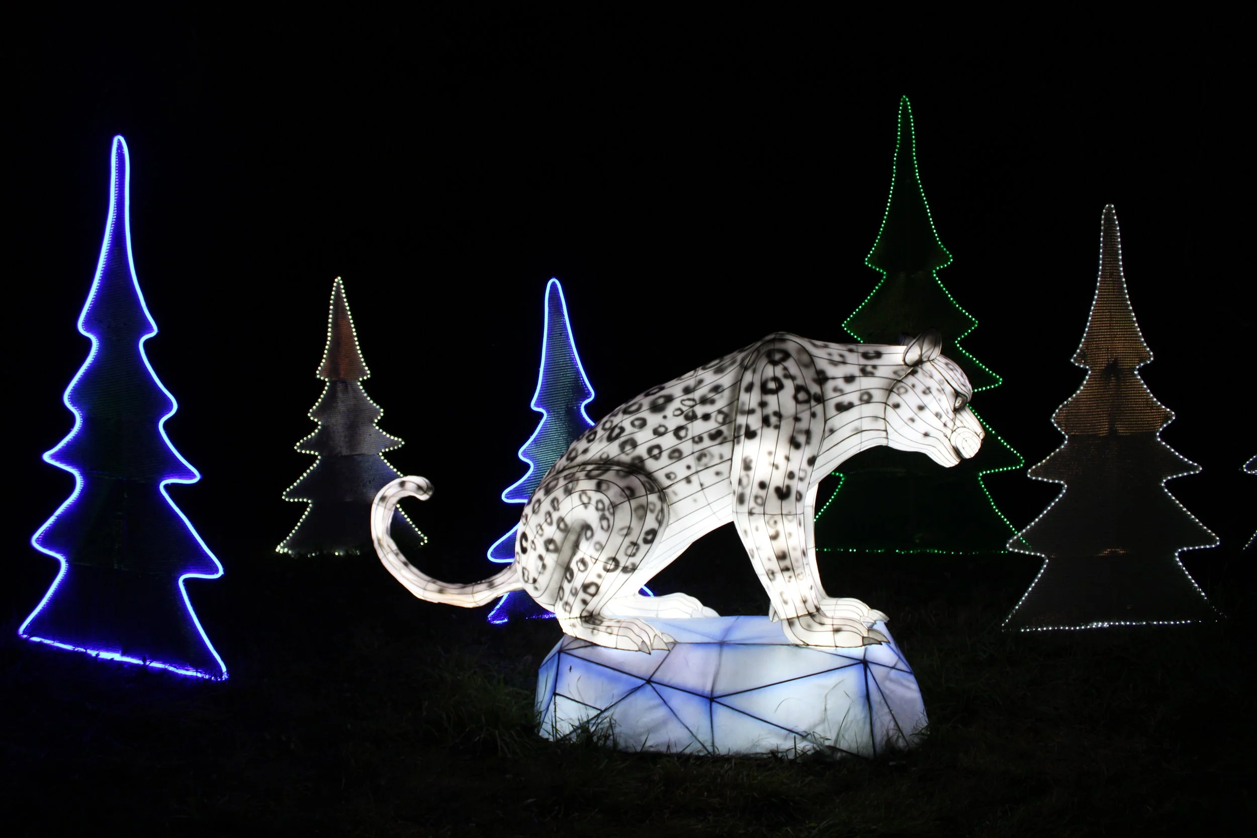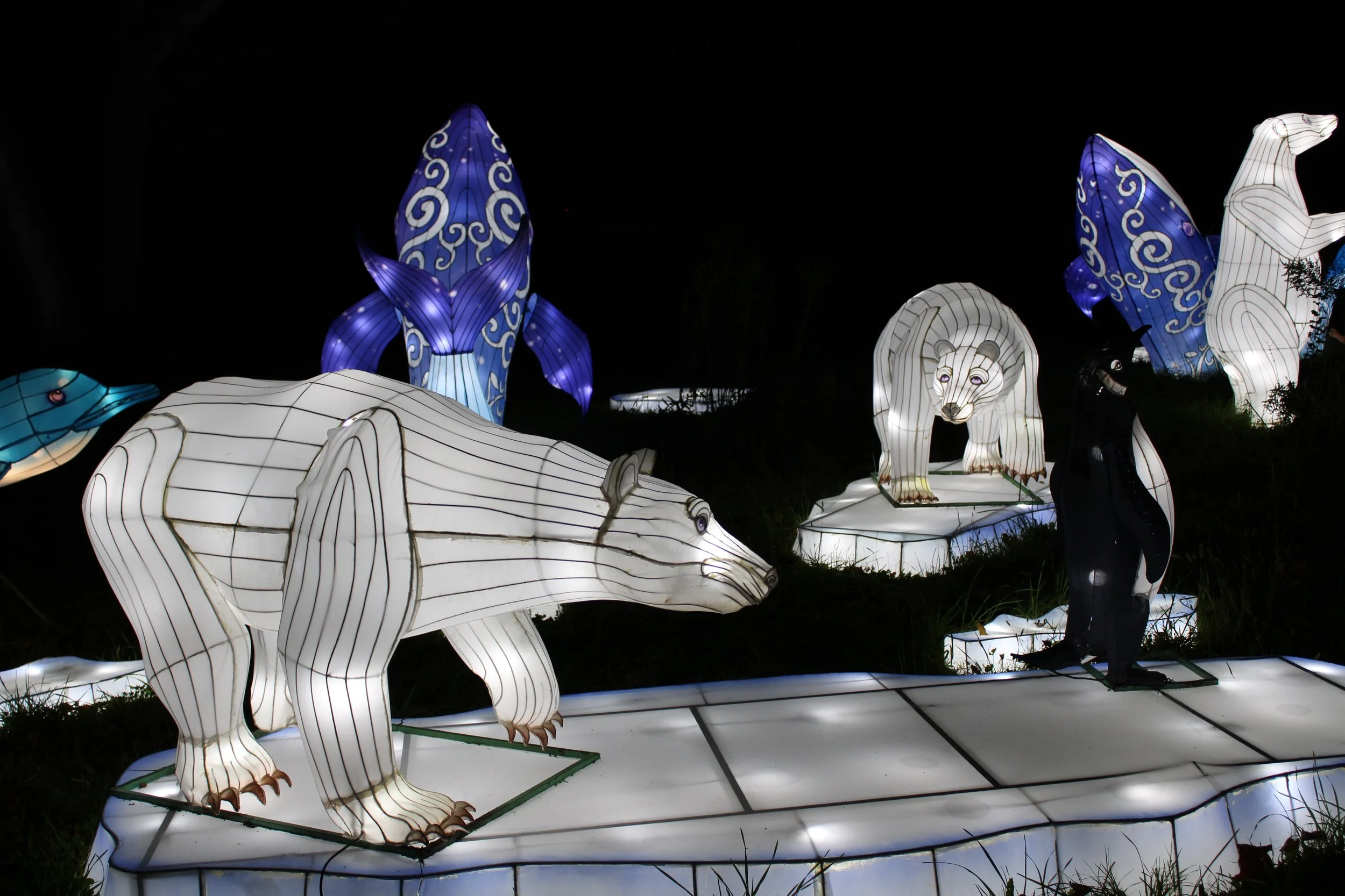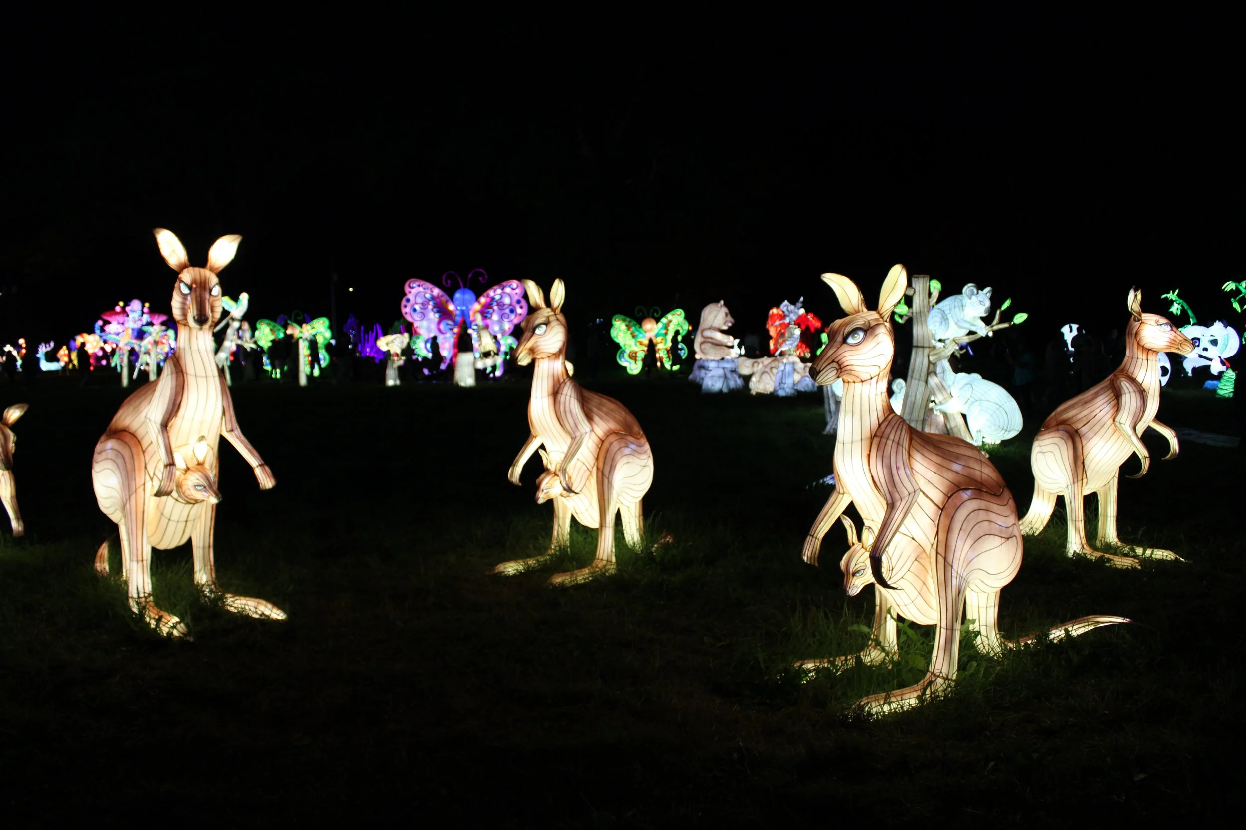 My kids – ages 3 and 8 – both emitted audible oohs at their first sight of the displays, particularly excited by each new group of animals they spotted. It was as if the Autumn Glow Festival created its very own, illuminated zoo where attendees could fawn over the animals from up close and personal. From pandas to giraffes to elephants to flamingos, the festival seemed to have a favorite animal for everyone. The pandas were particularly whimsical, each one displayed with its own unique personality. Kids from all families were having a ball wandering through them, “petting” each one and mimicking their respective poses for photographs.