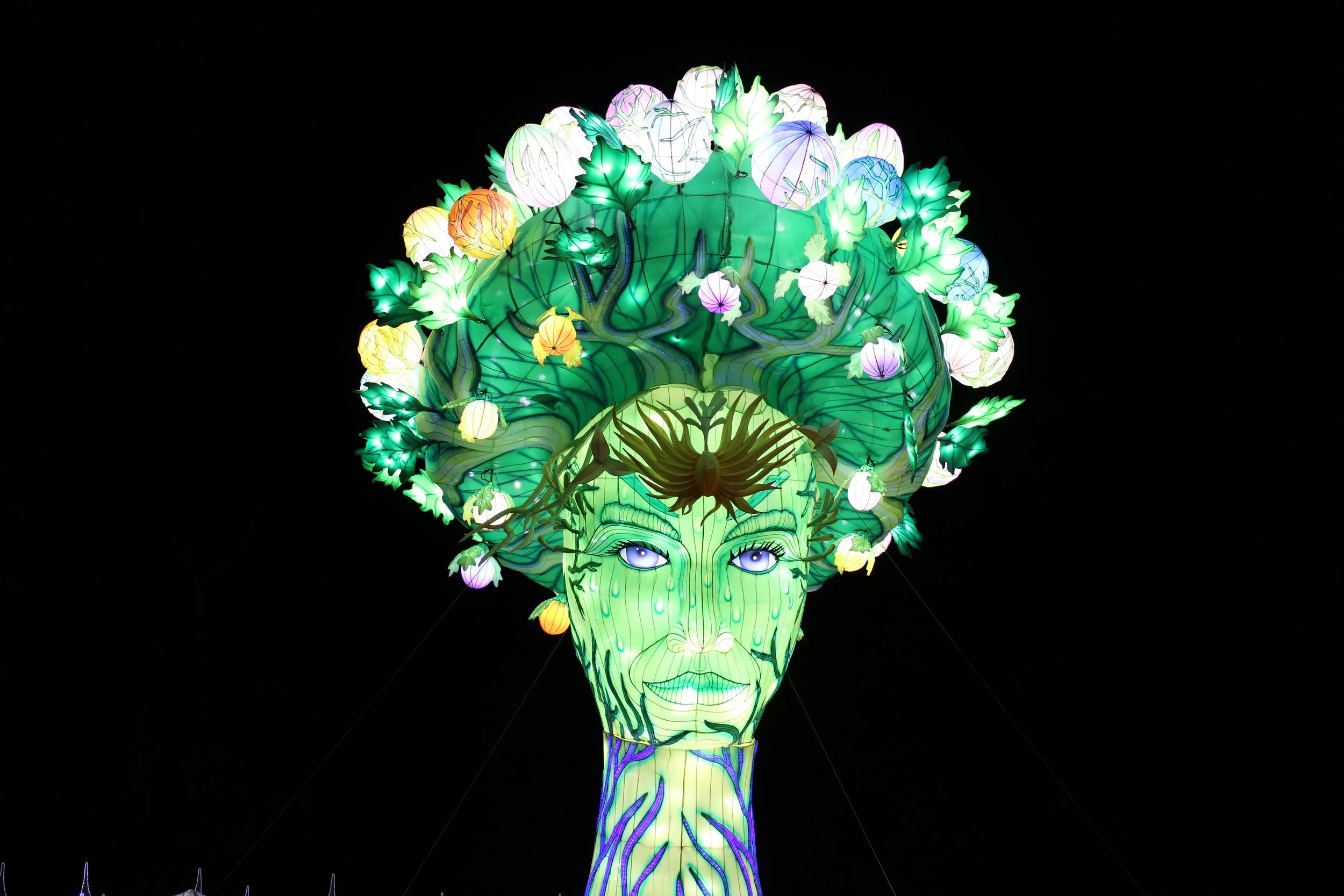 The centerpiece and statement piece of the whole event was an anthropomorphic tree with eyes that actually blinked at onlookers. It must have been 20 feet tall, and if you stood just right, its head sat just beside the early October moon providing its own light from the sky above. Before reaching the center was an equally impressive crocodile large enough to walk into. It served as the entrance to the main portion of the experience, families gleefully walking into the animal’s mouth just to pop out the other side and begin the heart of the magnificent journey ahead.