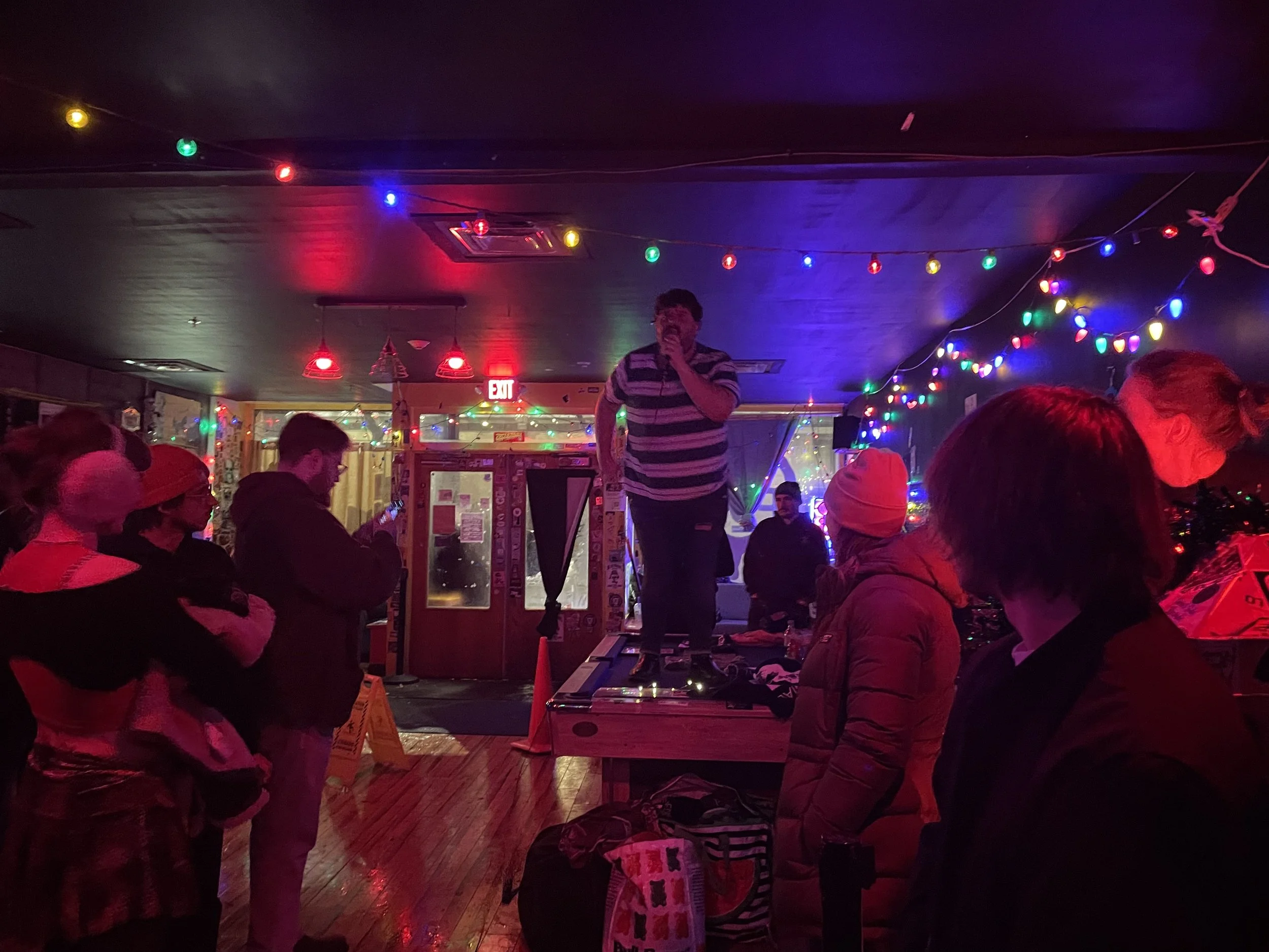 I approached No Fun on this 12 degree Saturday night on a whim — I’d seen the flyer for the Third Annual Everybody That Loves You holiday show on Instagram a few weeks back and, though not intimately familiar with any of the bands, decided it could be a fun time. Naturally, my social anxiety and the freezing temperatures had me second guessing minutes before getting in the car (How bad would it be if I didn’t go? What if something happens on the way there and I’m stuck on the side of the icy Northway? What if…?). Yet, I must practice what I preach and get outside my house and go to shows, lest I be the worst of the worst: a phony (that’s for the Catcher in the Rye fans out there).