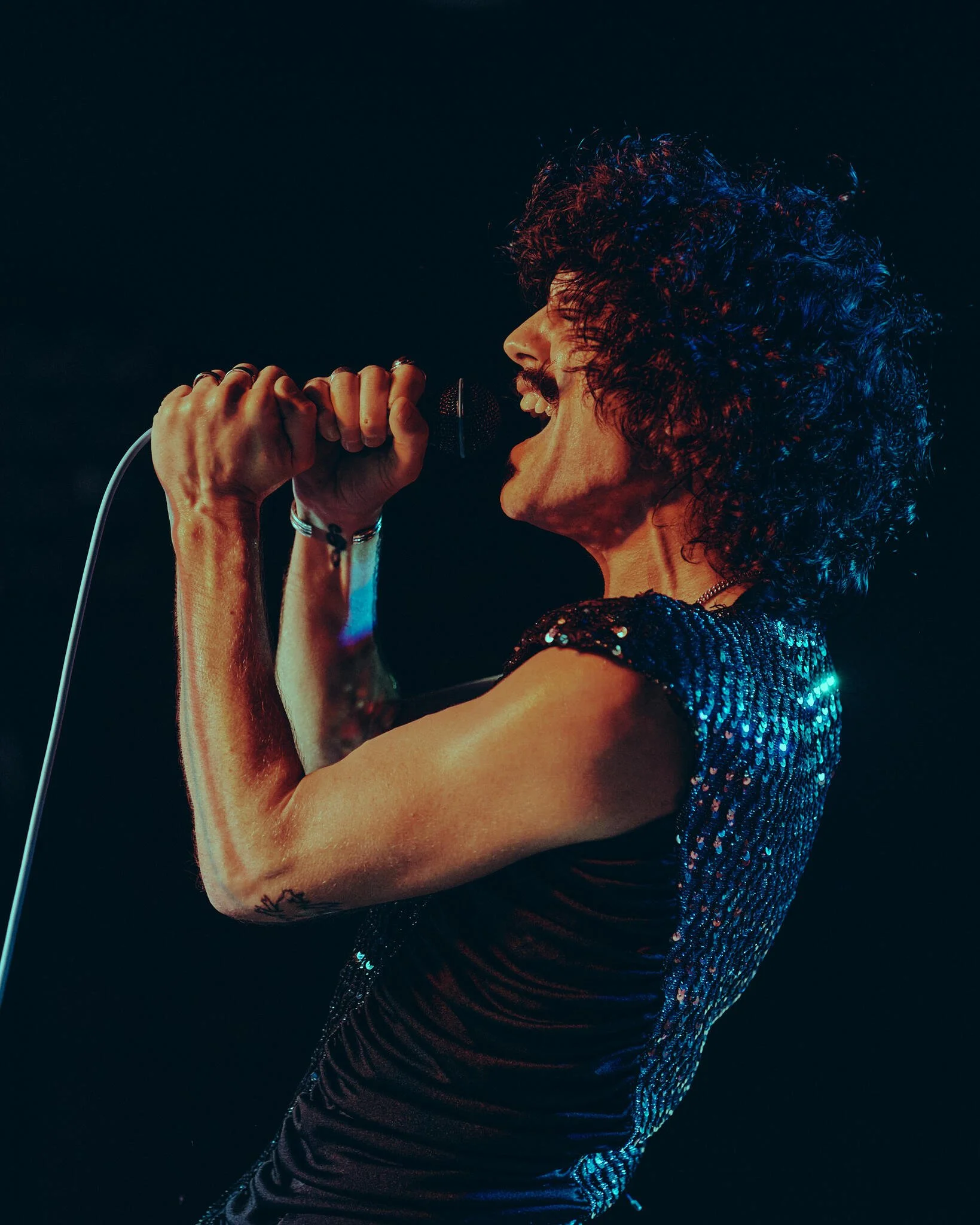 Nally, due to his jet black hair and signature mustache, has been compared to Freddie Mercury or even Noel Fielding, however, a more appropriate comparison is Willy Wonka, though not in looks. Nally physically summersaulted up to the microphone, reminding one of Gene Wilder’s famous entrance in the 1971 film. Wilder only accepted the role on the condition that he could enter with a limp, then roll forward, casting doubt over his intentions onto the audience. Nally is a complete wildcard on stage and created so many mythologies around Foxy Shazam that the truth of his stories is still debated in fan circles (but what could you expect from a man that once tried to scar his face to look like a villain during a recorded interview?)