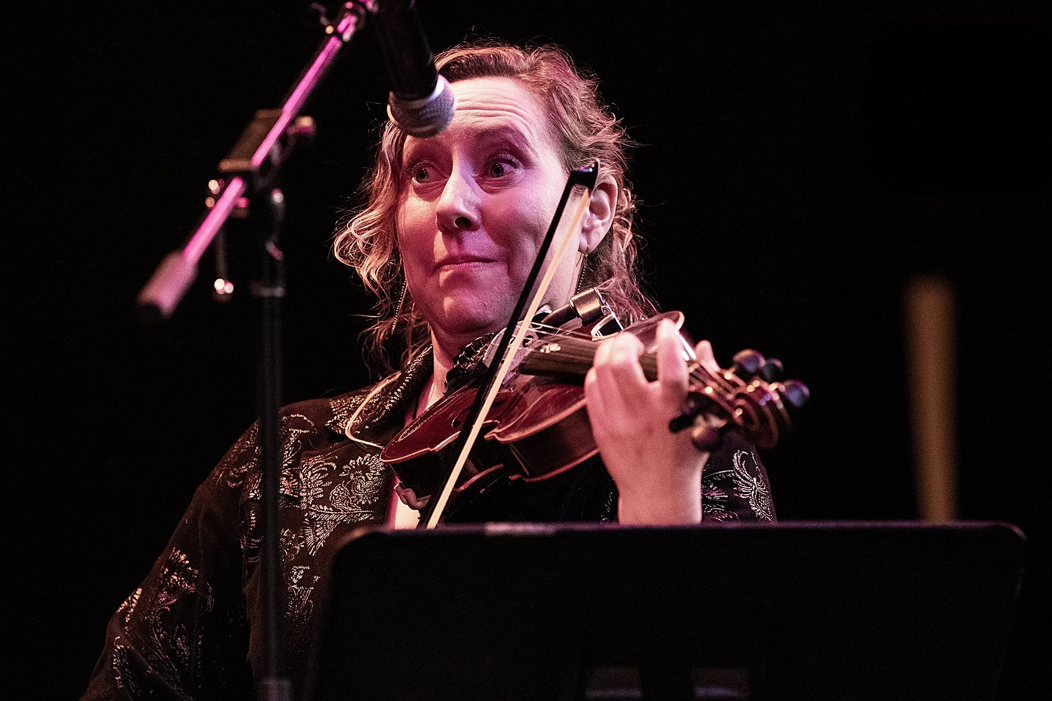 First, “Recruerdos de la Alhambra + Dance of the Yi People” with Tom Torrisi on Spanish guitar, and Zhou Yi on pipa, bringing together the sounds of 19th century Spain and the traditional music of the ethnic Yi peoples. Then, a piece of Chinese-American folk fusion, with Sara Milonovich on fiddle and Scott Hopkins on Banjo. This blend of two wildly different styles — bluegrass and Chinese folk — worked exceptionally well.