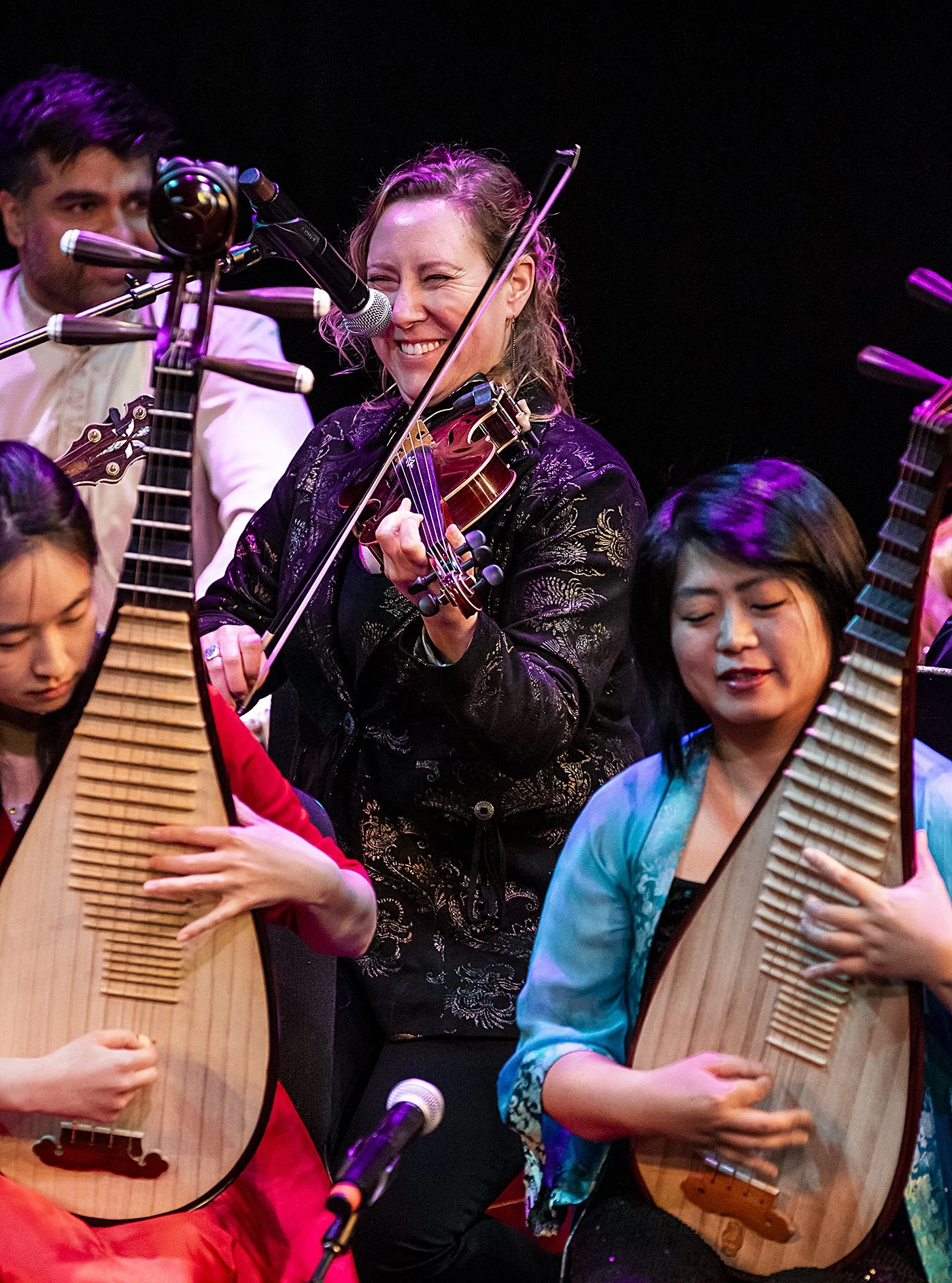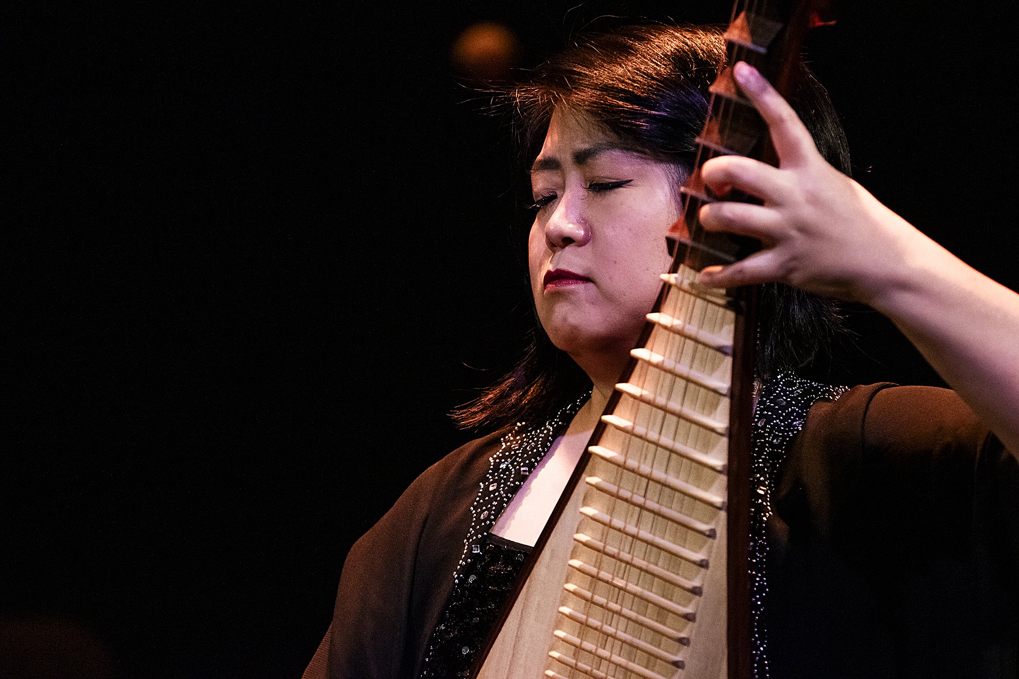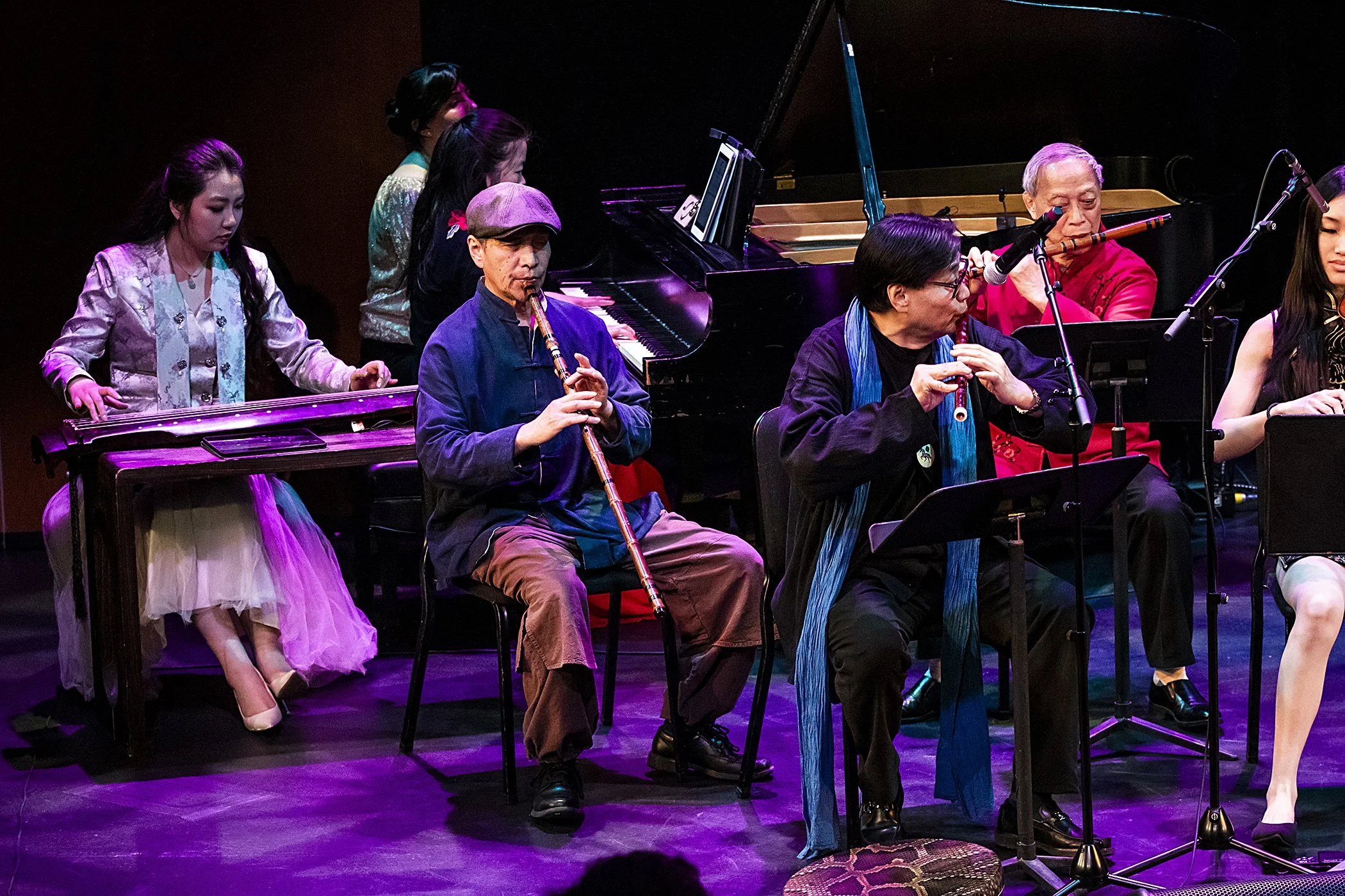 Spring was a common theme throughout the production, with other seasonal pieces such as “The Picture of Autumn Cattail and Hibiscus,” “Three Variations on Plum Blossom” (a celebration of the late winter Chinese flower and highlighting the prowess of accomplished guqin musician Wenrui Shi), “Spring Along the Silk Road” with Devesh Chandra on tabla, “Spring Breeze Across the Desert” (also featuring a powerful guqin solo from Shi) and Renjie Song on the duduk, an ancient reed instrument from Armenia.