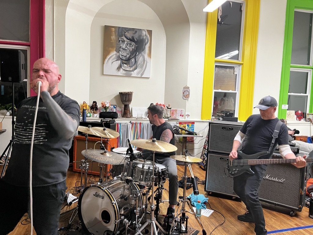 “I love playing at The Free School,” headliner Spiritkiller’s lead singer, Charles Cure, told me. “It’s a sick venue, a community space, and it’s a resource for people. Any chance we can play somewhere that benefits people, I love that.”
