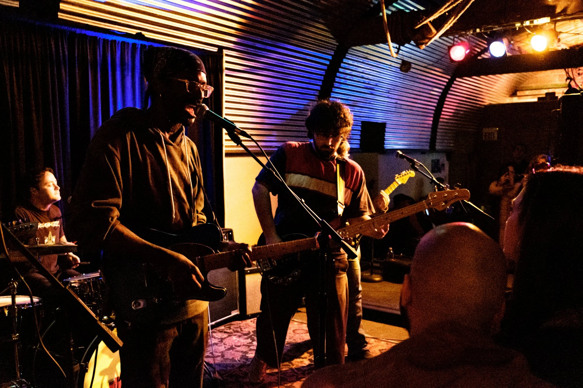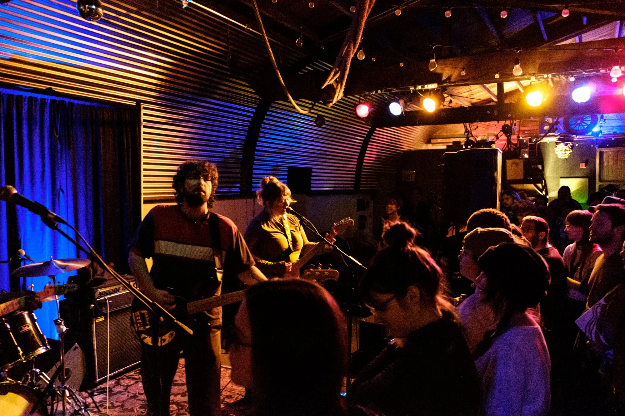 First up was Hotline TNT. I last saw them play a secret show in a crumbling bandshell back in 2022, and I'll admit, I didn't ‘get it’ back then. It was a split bill with a hardcore band and I expected another. Maybe it's the grey hairs talking, but their sound lit up something deep inside of me this time. They wove a fabric of upfront and honest emotion out of fuzzed-out guitars, tight vocal harmonies, and drums that somehow pushed and pulled at the same time. There were parts that sped ahead of you and parts that felt like being dragged back by a weight of massive proportion despite a steady bpm. Often you didn't realize which one or the other you were in until the next section started. To be in the crowd was to be taken on a journey with them. Not one that was always pleasant, but one that you couldn't help but look back on fondly once their amps clicked off.